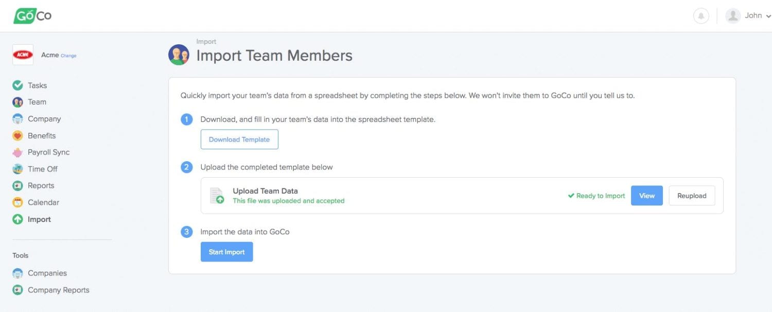 When you go to import, you’ll now be able to download a template that’s pre-filled with all the current information saved in GoCo.