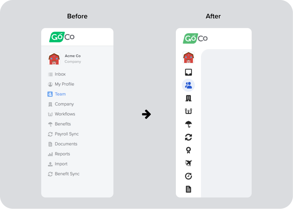 How you navigate GoCo and find what you need is one of the most important areas of the GoCo experience. We upgraded the left-side navigation to take less space on the page so there’s more breathing space to work in GoCo.