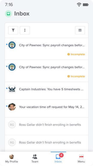 Receive notifications on your mobile device so you don’t miss a beat, from time-off requests to payroll reminders.