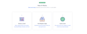 Check out GroupGreeting, a virtual service that specializes in digital cards with group access! Their key features include unlimited signatures, unlimited pages, the ability to add photos and images, a digital PDF copy, an eco-friendly approach, and no advertisements on the cards!