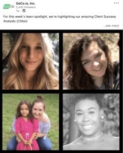 Here at GoCo, we’ve recently started featuring employee spotlights to highlight the incredible people who make our magic happen. You can implement this into your organization on a personal level to commemorate work anniversaries! Feature the celebrated employee on your company’s social media profiles and highlight their role and key contributions! By publicly acknowledging and expressing gratitude for employee contributions, your organization establishes itself as a people-centered place to work. Not only does this do wonders for company reputation, but it keeps your team uplifted as well.