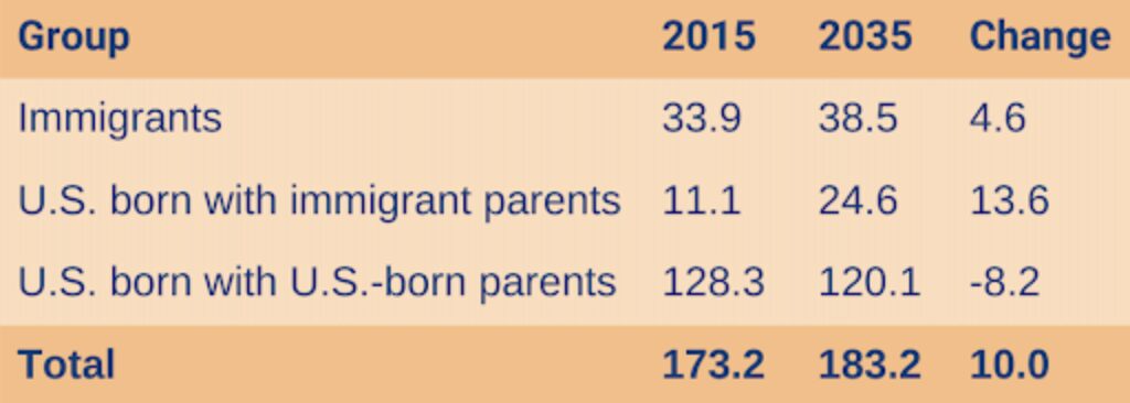 Here is a chart to help us get a better idea of the projected change in the United States working-age population from 2015-2035. (Ages 25-64, in millions.)
