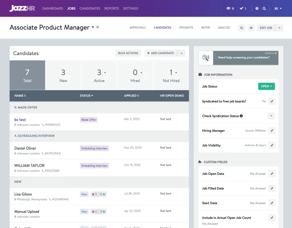 Don’t just fill positions – hire the right people who can help it grow. With features like automated job board syndication, knockout questions, and custom workflow helpers, JazzHR focuses on attracting highly qualified candidates who align with your business’s needs and culture. Automate repetitive tasks such as scheduling interviews and sending reminders — free up your time for core business activities while your ATS works for you, not against you.