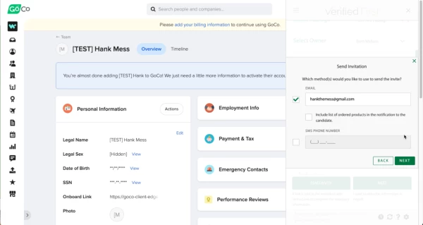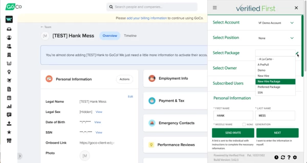 Verified First integrates with GoCo via browser extension, transforming your hiring process from start to finish. With this one-click integration, GoCo users can easily order, review, and manage Verified First’s background screening solutions all within the GoCo platform, including background checks, drug testing, I-9 & E-Verify, and more.
